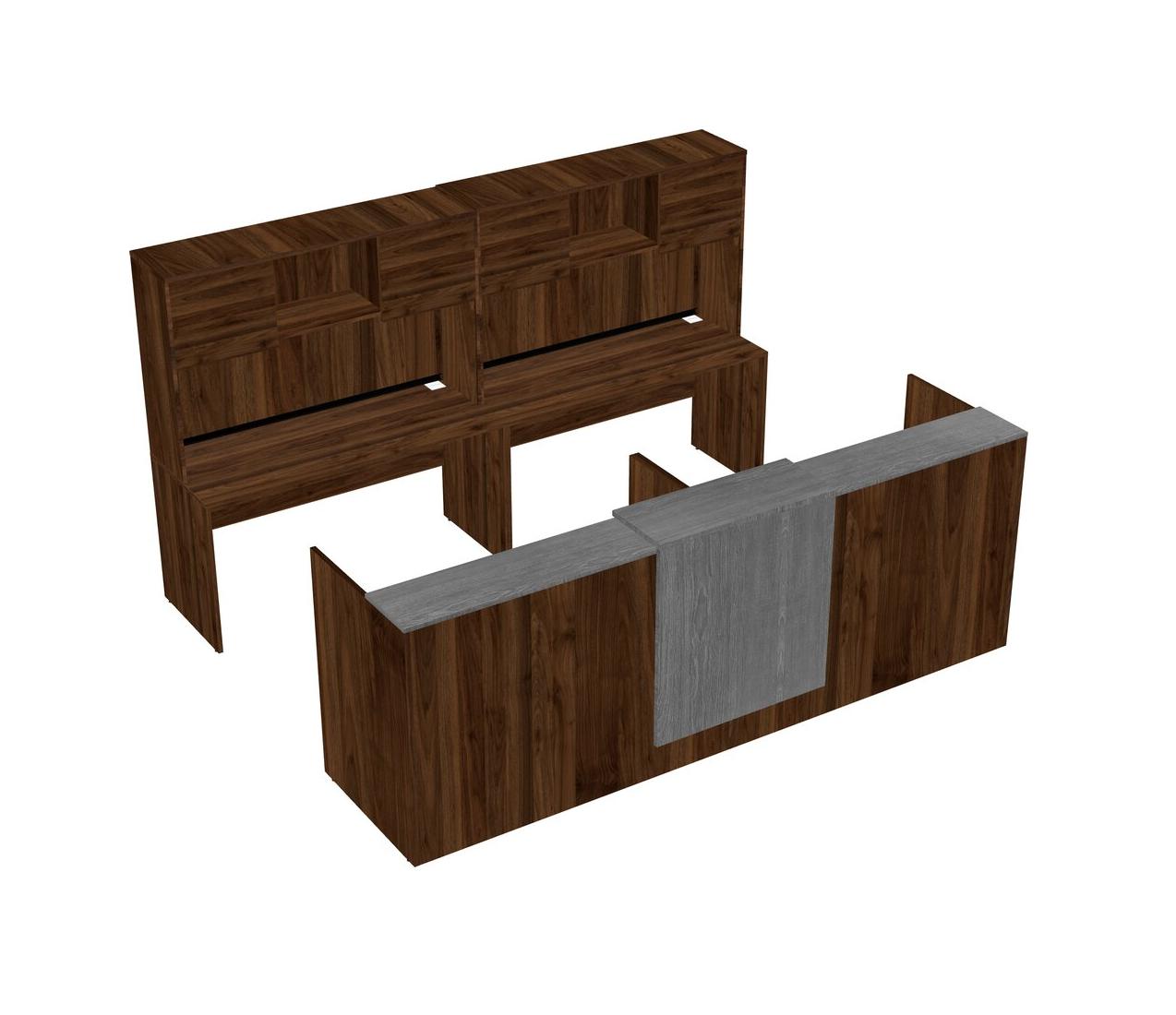 Modular Shared Reception Desk + Credenza Desk With Floating Counter + Hutch + Wooden Mobile Drawers