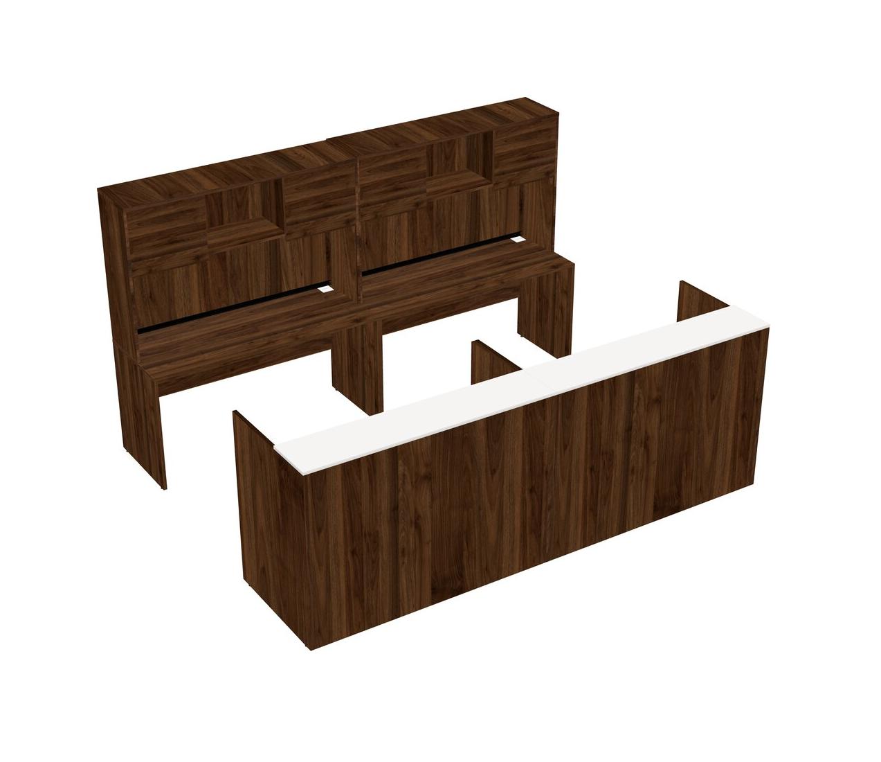 Modular Shared Reception Desk + Credenza Desk + Hutch + Wooden Mobile Drawers
