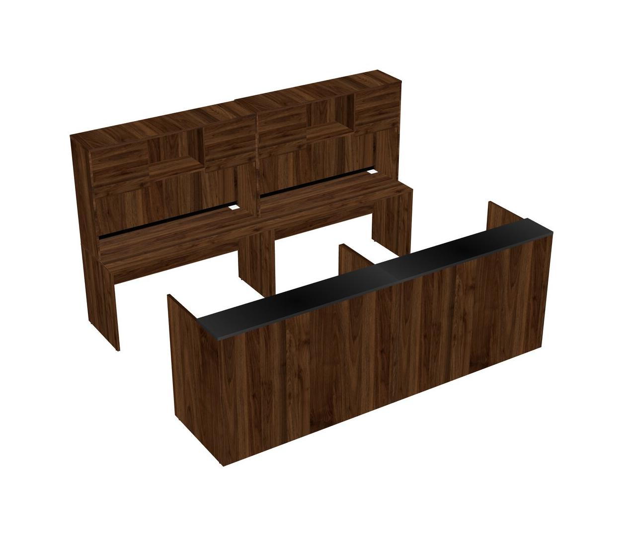 Modular Shared Reception Desk + Credenza Desk + Hutch + Wooden Mobile Drawers