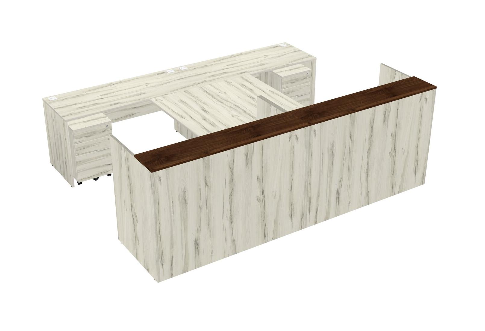 Modular Shared Reception Desk + Credenza Desk + Wooden Mobile Drawers