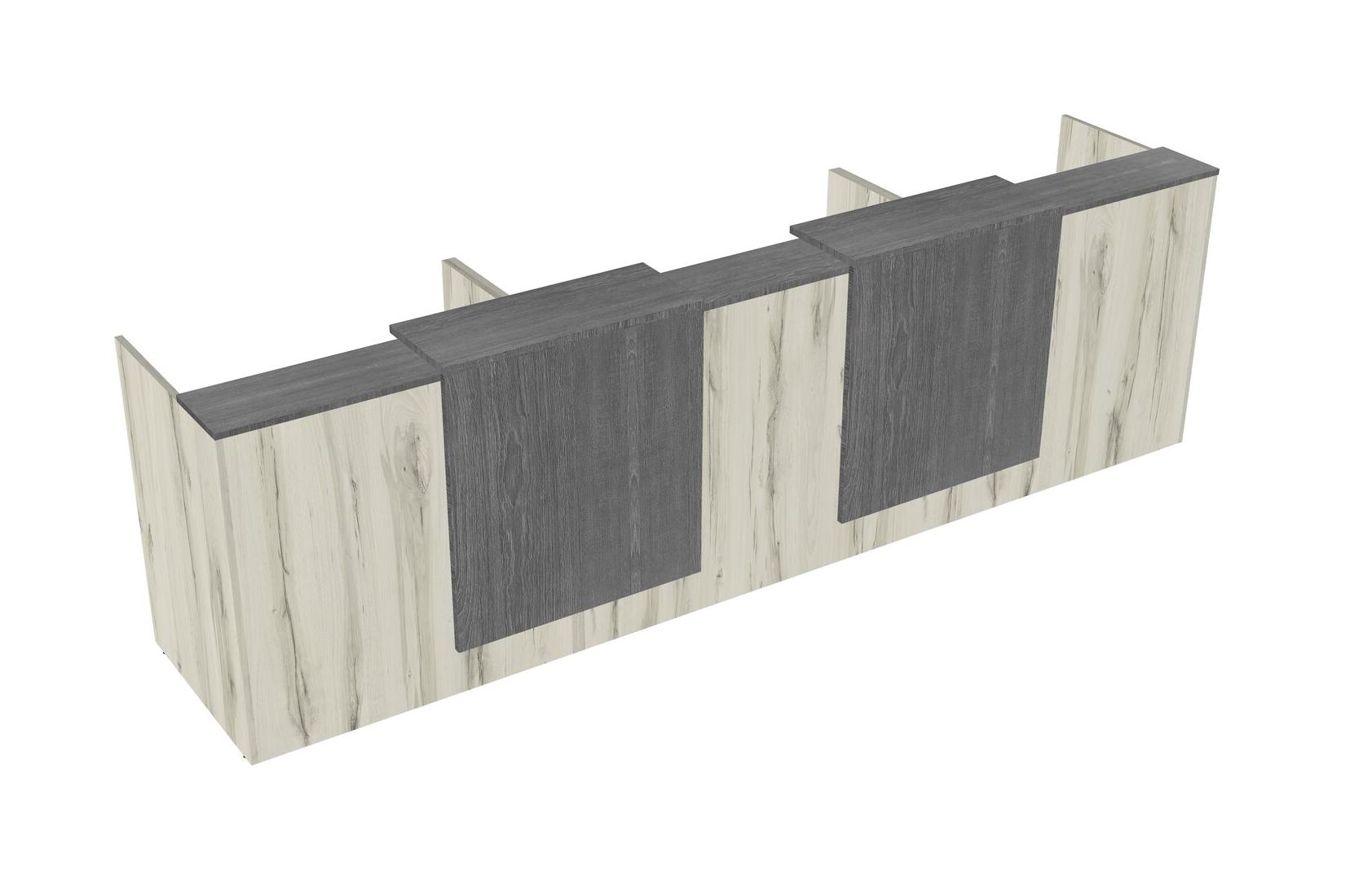 Grey Long Modular Reception Desk With Floating Counter + Wooden Mobile Drawers