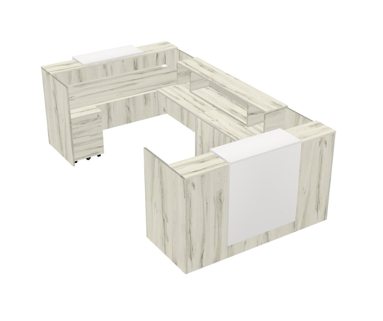 Shared U-Shape Reception Desk With Floating Counter + Counter