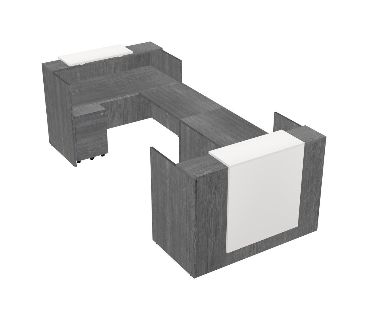 Shared U-Shape Reception Desk With Floating Counter + Counter