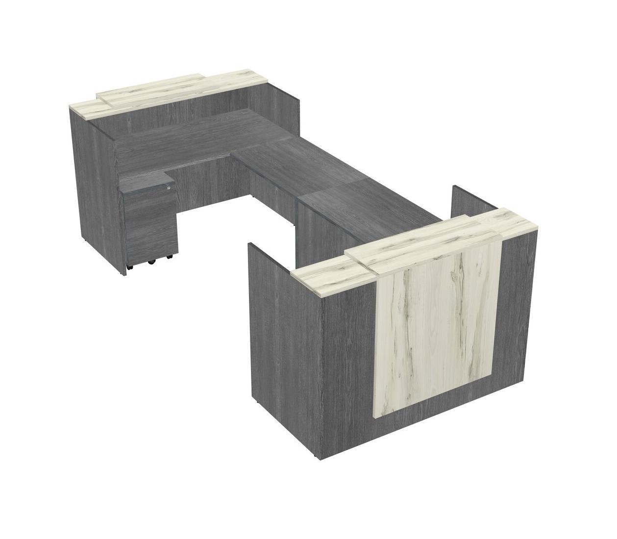 Shared U-Shape Reception Desk With Floating Counter + Counter