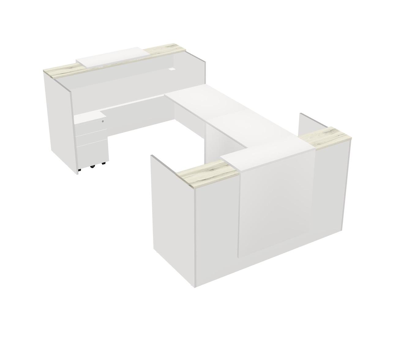 Shared U-Shape Reception Desk With Floating Counter + Counter
