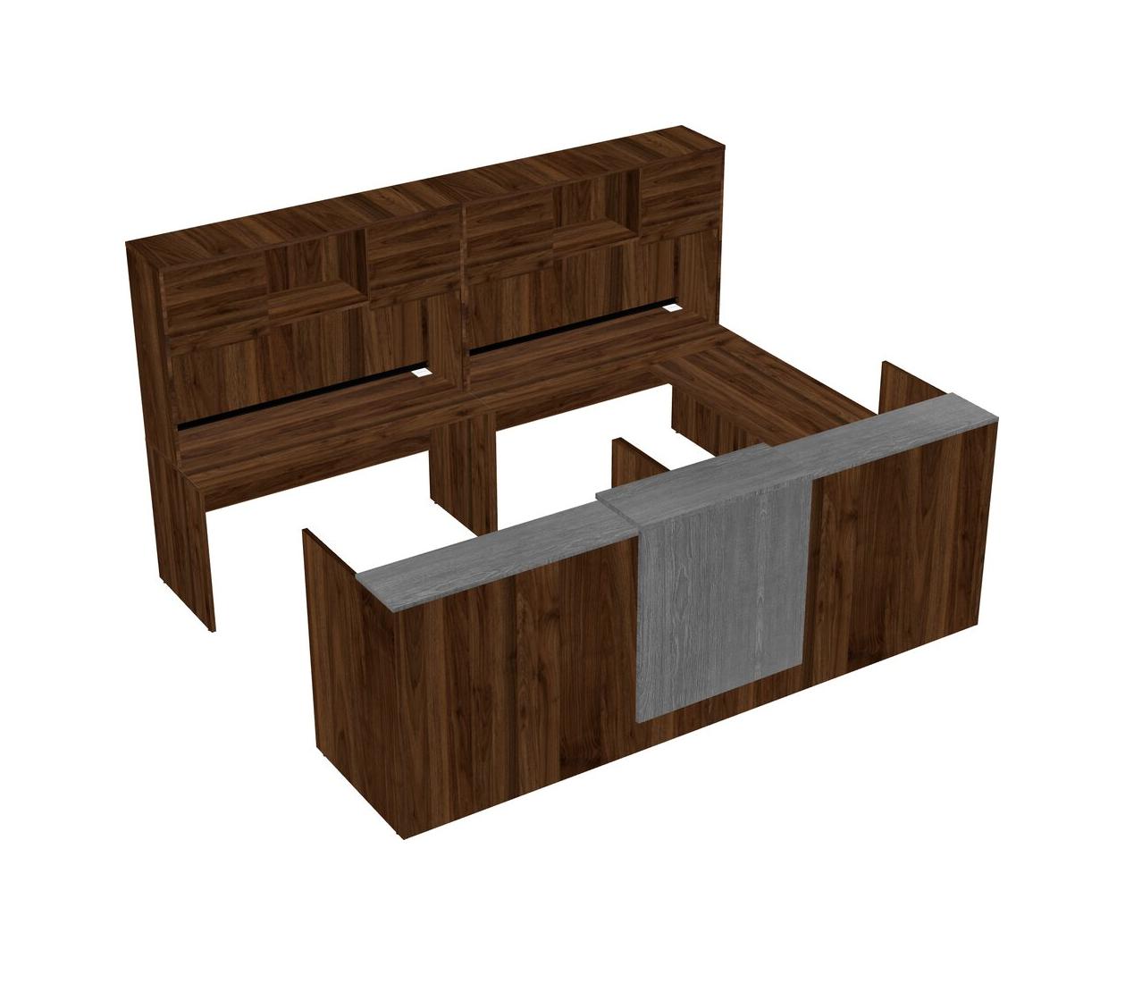 Modular Shared One Sided U-Shaped Reception Desk With Floating Counter + Hutch + Wooden Mobile Drawers