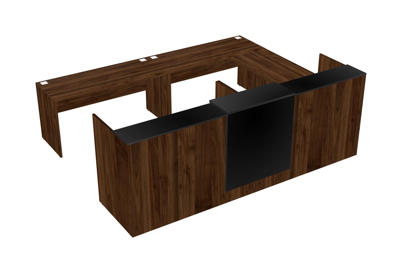 Modular Shared One Sided U-Shaped Reception Desk With Floating Counter + Wooden Mobile Drawers