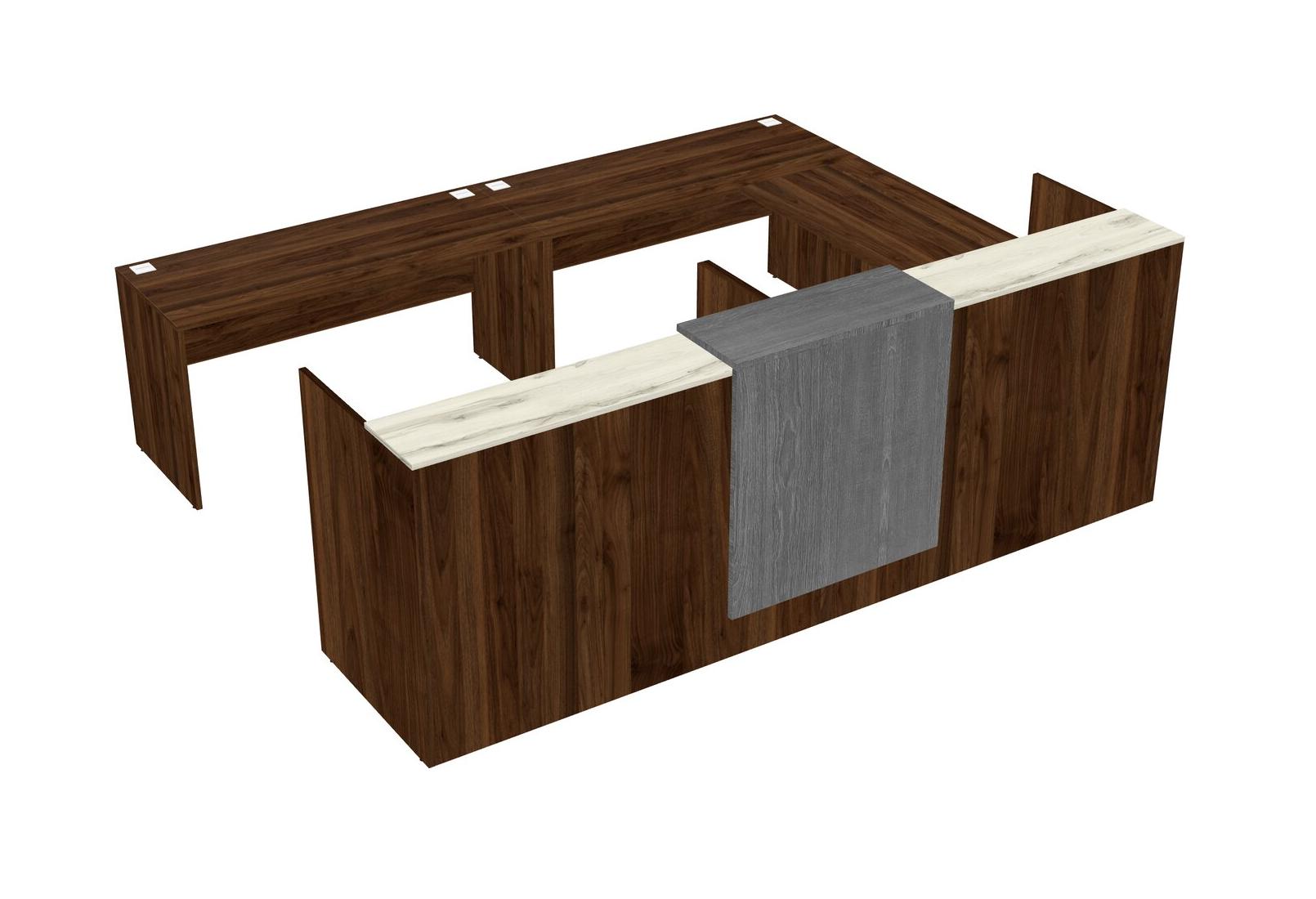 Modular Shared One Sided U-Shaped Reception Desk With Floating Counter + Wooden Mobile Drawers