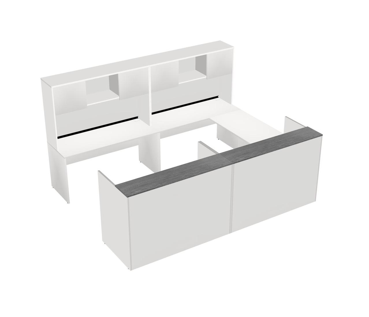 Modular Shared One Sided U-Shaped Reception Desk + Hutch + Wooden Mobile Drawers