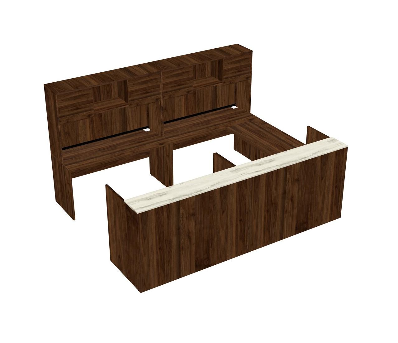 Modular Shared One Sided U-Shaped Reception Desk + Hutch + Wooden Mobile Drawers
