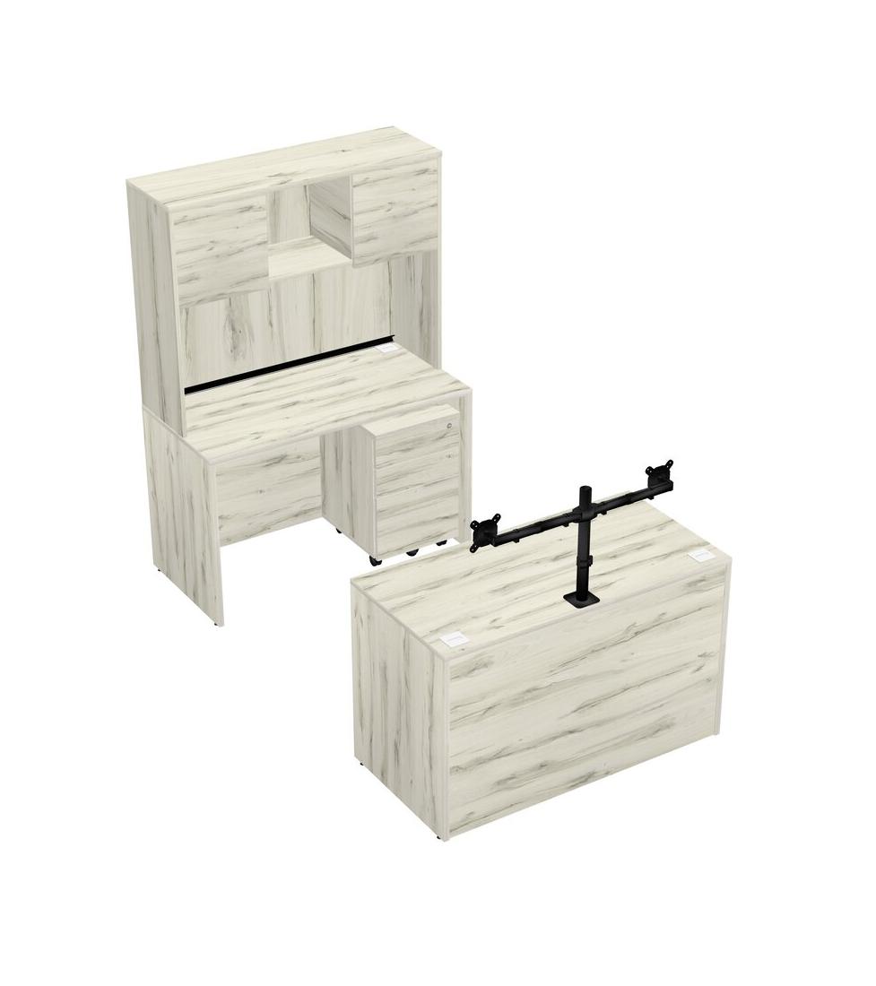 Office Parallel Desk Credenza Desk + Wooden Mobile Drawers + Hutch + Monitor Arm (double Arms)