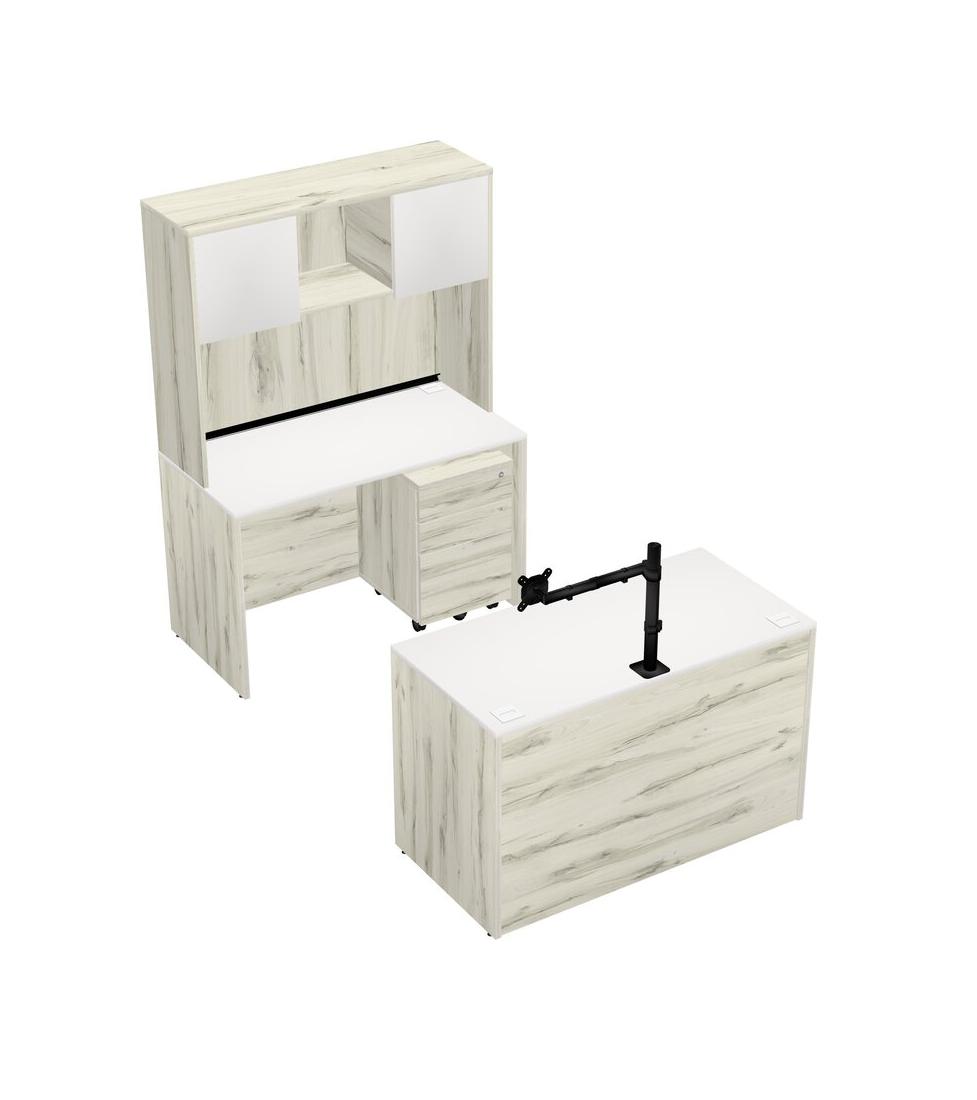 Office Parallel Desk Credenza Desk + Wooden Mobile Drawers + Hutch + Monitor Arm (single Arm)