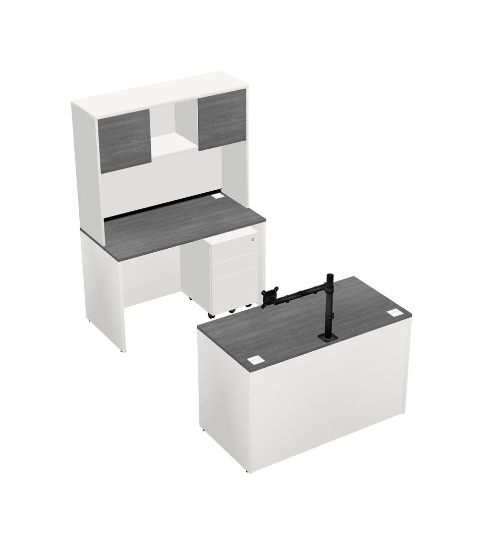 Office Parallel Desk Credenza Desk + Wooden Mobile Drawers + Hutch + Monitor Arm (single Arm)