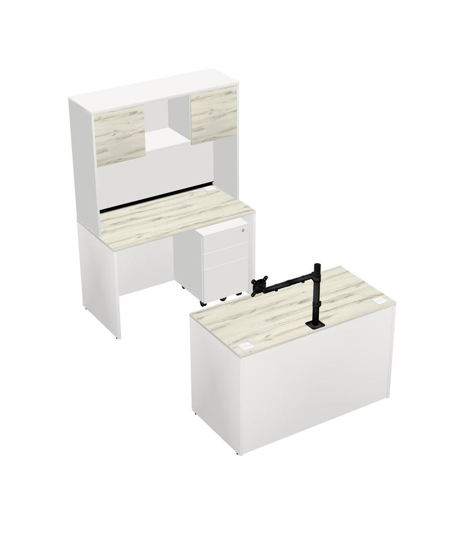 Office Parallel Desk Credenza Desk + Wooden Mobile Drawers + Hutch + Monitor Arm (single Arm)