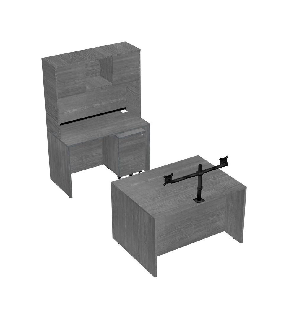 Office Parallel Desk Credenza Desk + Wooden Mobile Drawers + Hutch + Monitor Arm (double Arms)