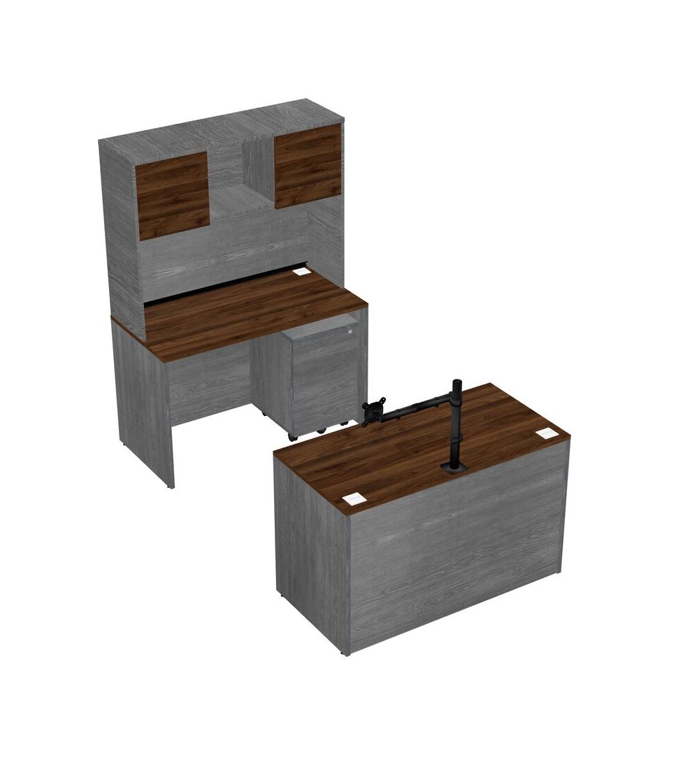 Office Parallel Desk Credenza Desk + Wooden Mobile Drawers + Hutch + Monitor Arm (single Arm)