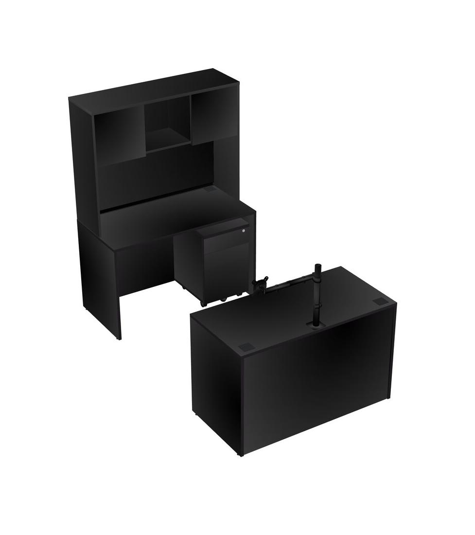 Office Parallel Desk Credenza Desk + Wooden Mobile Drawers + Hutch + Monitor Arm (single Arm)