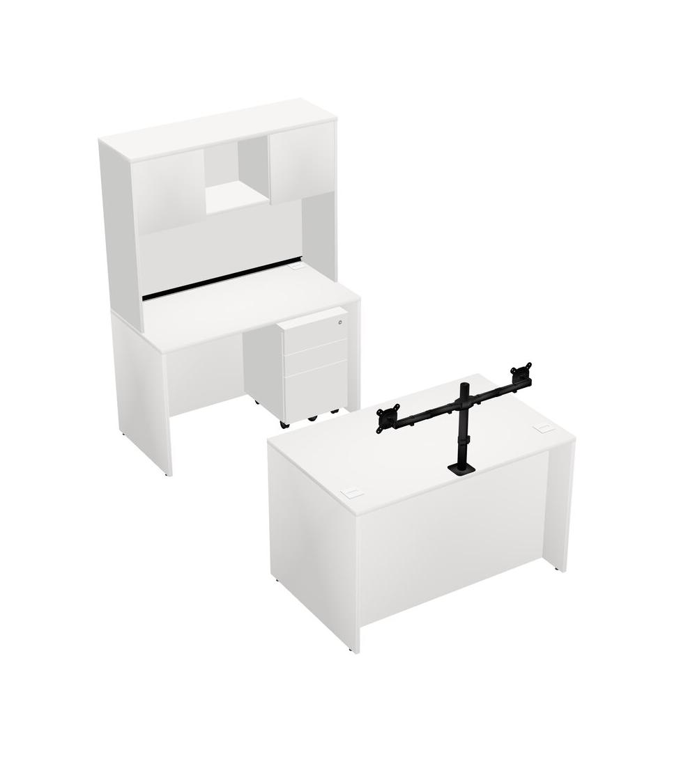Office Parallel Desk Credenza Desk + Wooden Mobile Drawers + Hutch + Monitor Arm (double Arms)