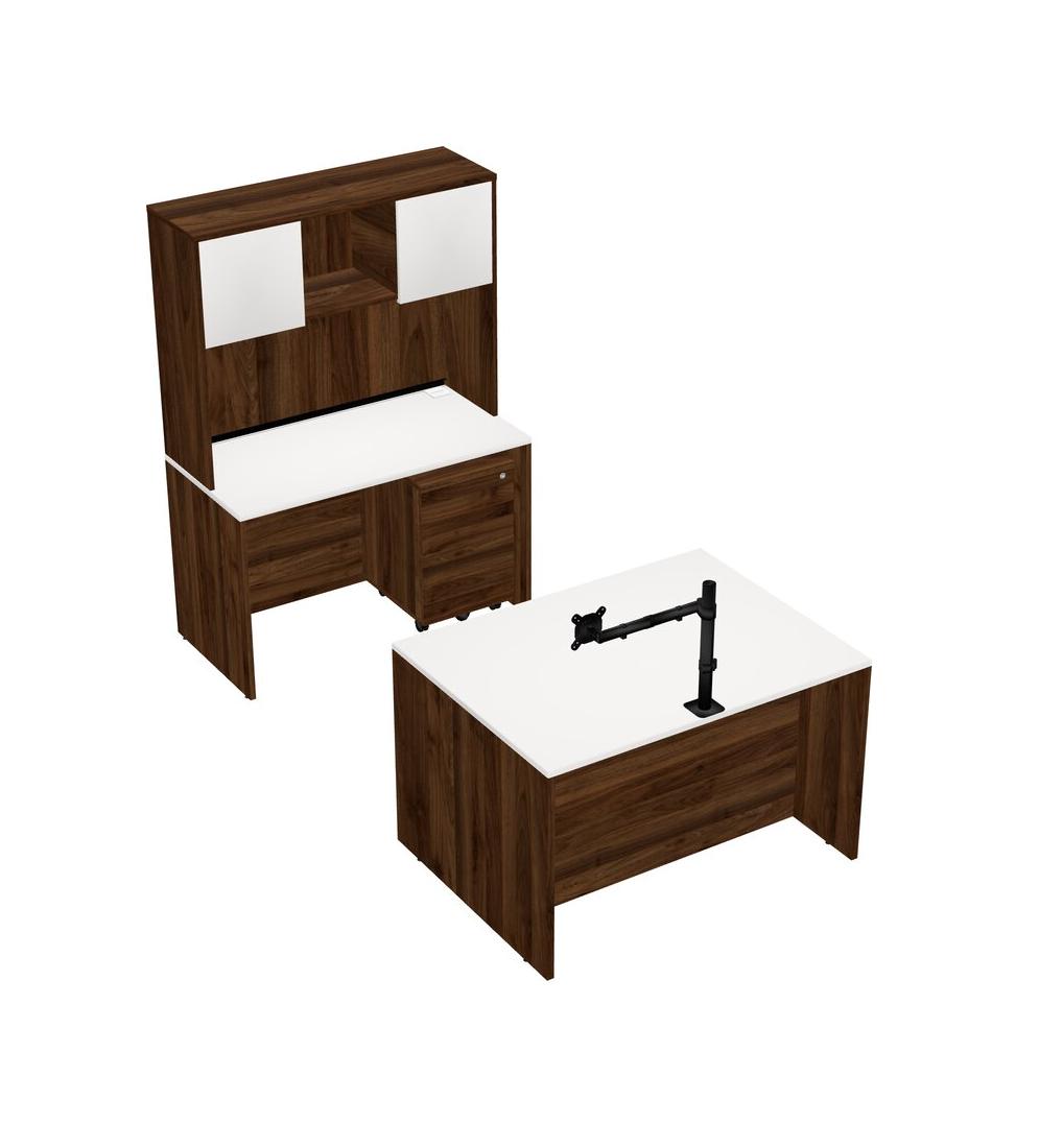 Office Parallel Desk Credenza Desk + Wooden Mobile Drawers + Hutch + Monitor Arm (single Arm)