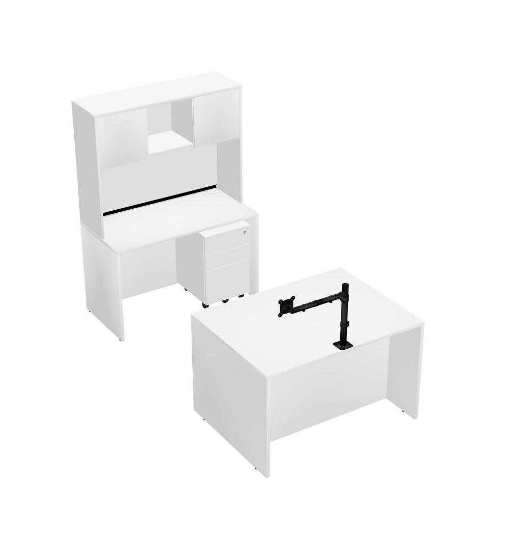 Office Parallel Desk Credenza Desk + Wooden Mobile Drawers + Hutch + Monitor Arm (single Arm)