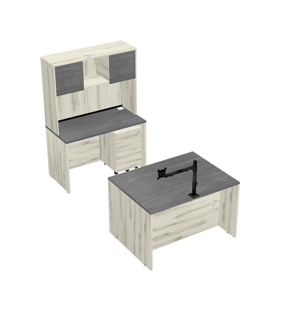 Office Parallel Desk Credenza Desk + Wooden Mobile Drawers + Hutch + Monitor Arm (single Arm)