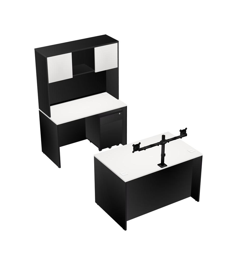 Office Parallel Desk Credenza Desk + Wooden Mobile Drawers + Hutch + Monitor Arm (double Arms)