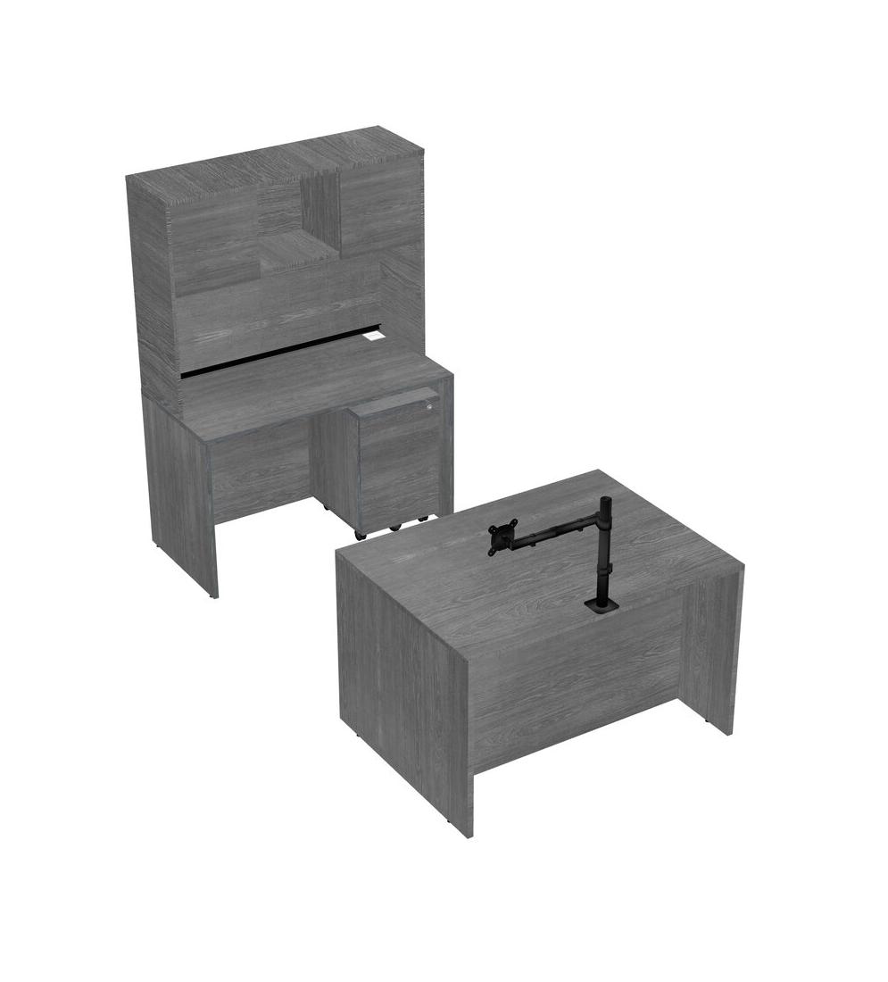 Office Parallel Desk Credenza Desk + Wooden Mobile Drawers + Hutch + Monitor Arm (single Arm)