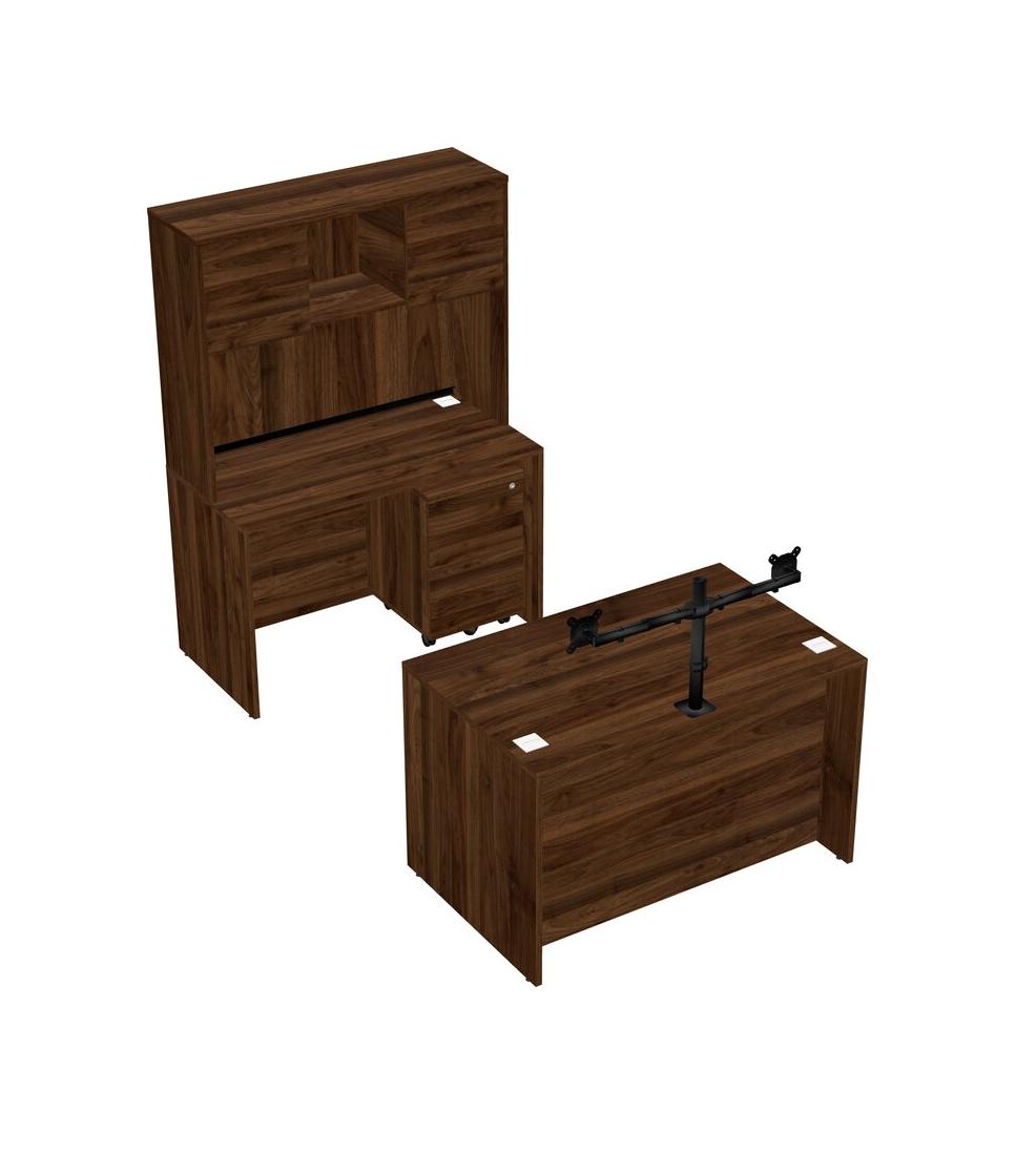 Office Parallel Desk Credenza Desk + Wooden Mobile Drawers + Hutch + Monitor Arm (double Arms)
