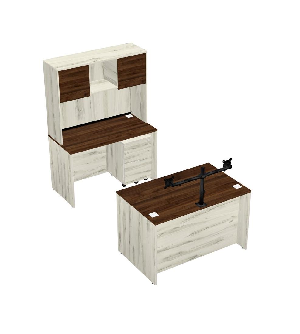 Office Parallel Desk Credenza Desk + Wooden Mobile Drawers + Hutch + Monitor Arm (double Arms)
