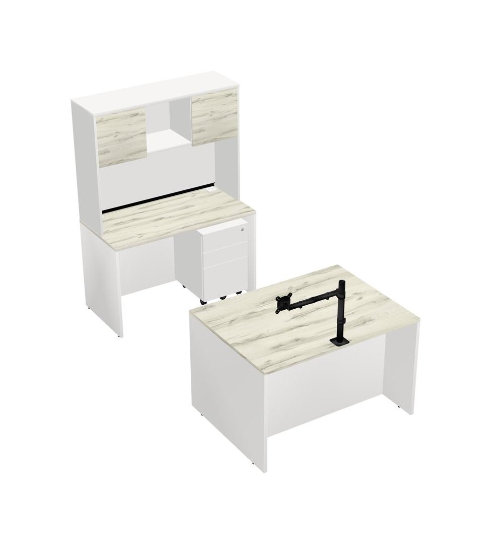 Office Parallel Desk Credenza Desk + Wooden Mobile Drawers + Hutch + Monitor Arm (single Arm)