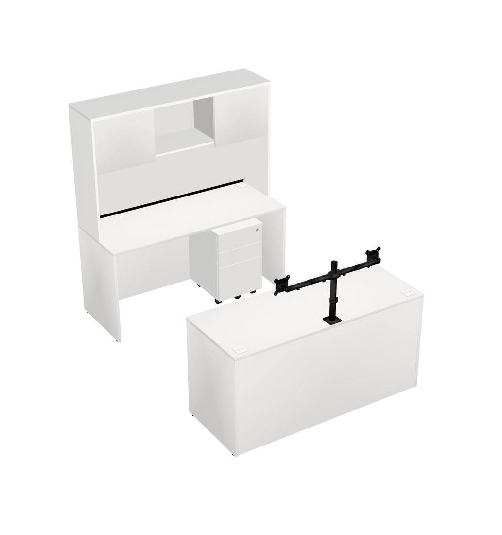 Office Parallel Desk Credenza Desk + Wooden Mobile Drawers + Hutch + Monitor Arm (double Arms)