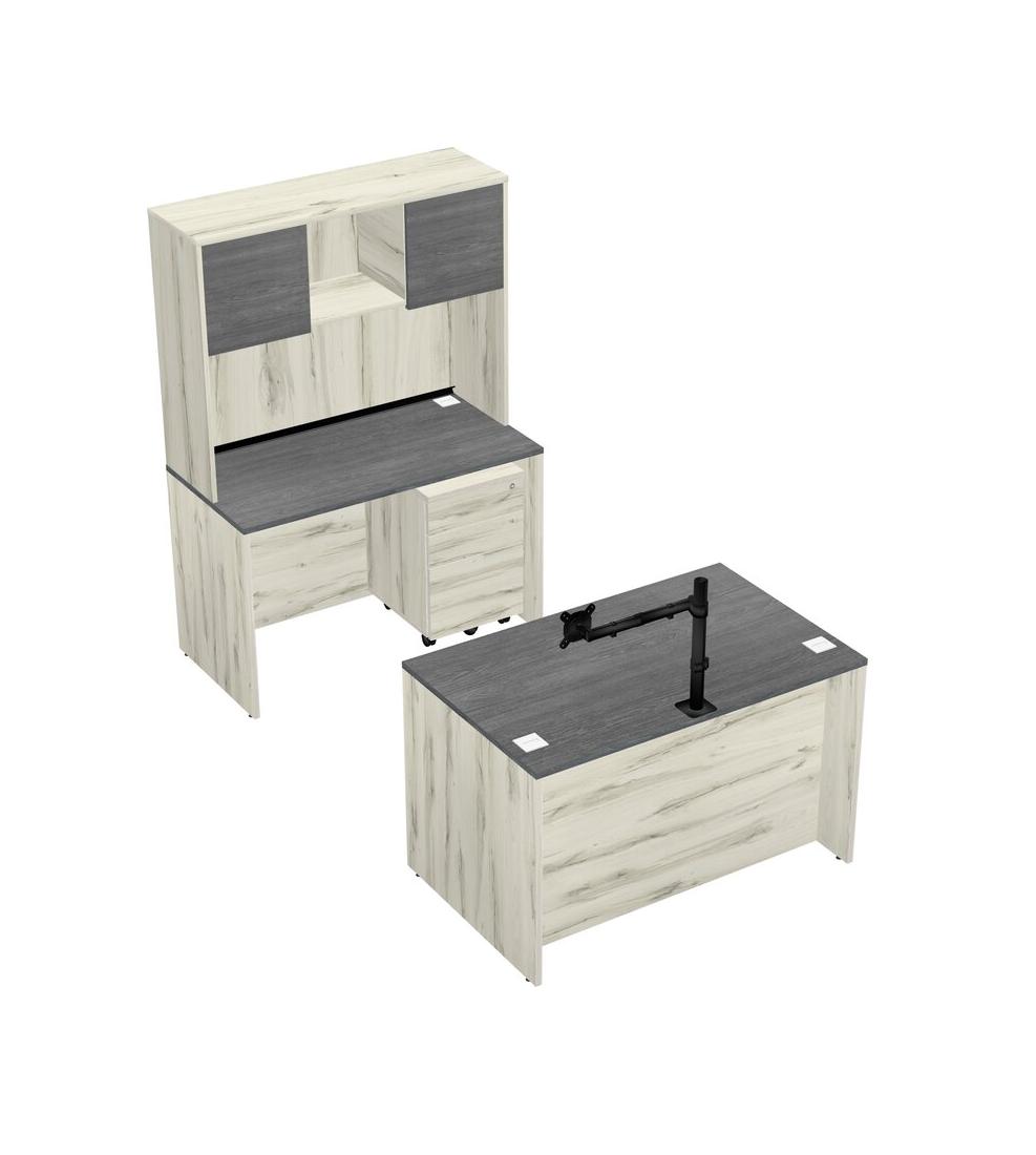 Office Parallel Desk Credenza Desk + Wooden Mobile Drawers + Hutch + Monitor Arm (single Arm)