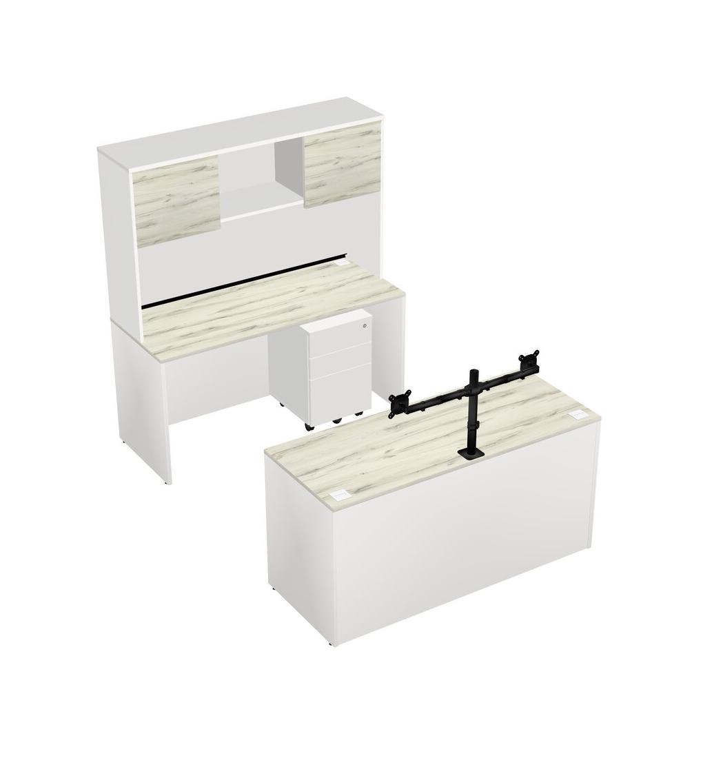 Office Parallel Desk Credenza Desk + Wooden Mobile Drawers + Hutch + Monitor Arm (double Arms)