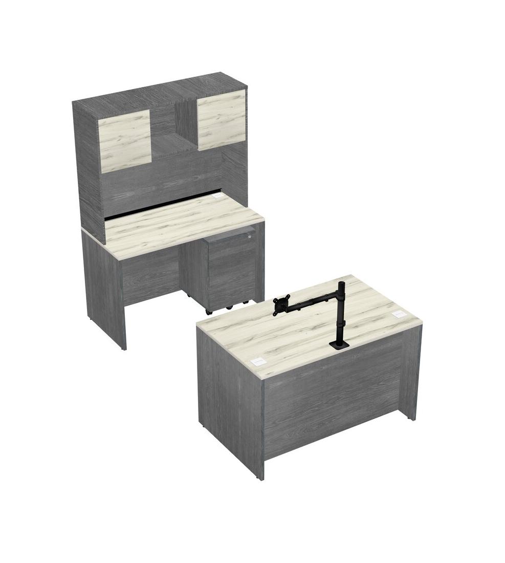 Office Parallel Desk Credenza Desk + Wooden Mobile Drawers + Hutch + Monitor Arm (single Arm)