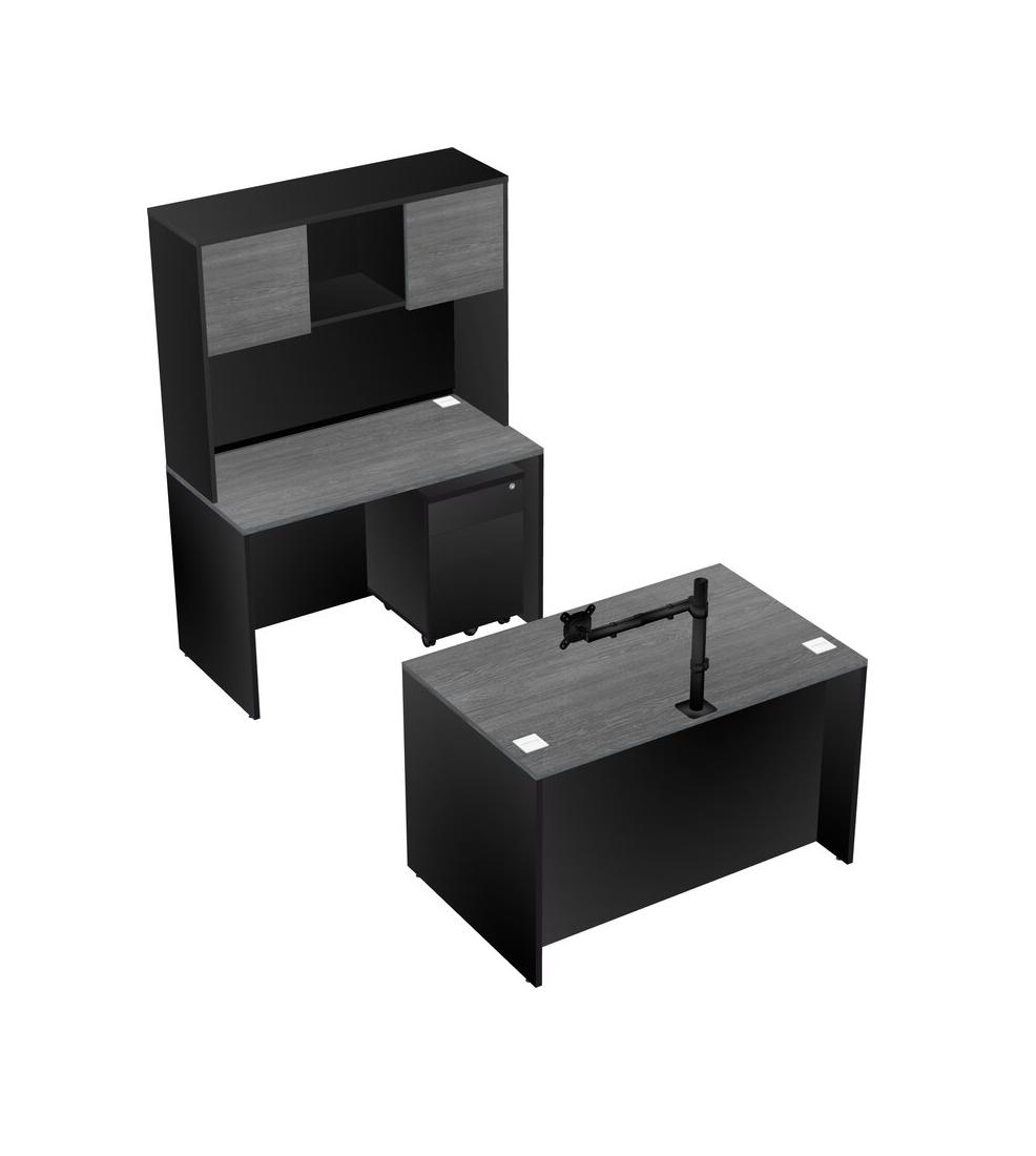 Office Parallel Desk Credenza Desk + Wooden Mobile Drawers + Hutch + Monitor Arm (single Arm)