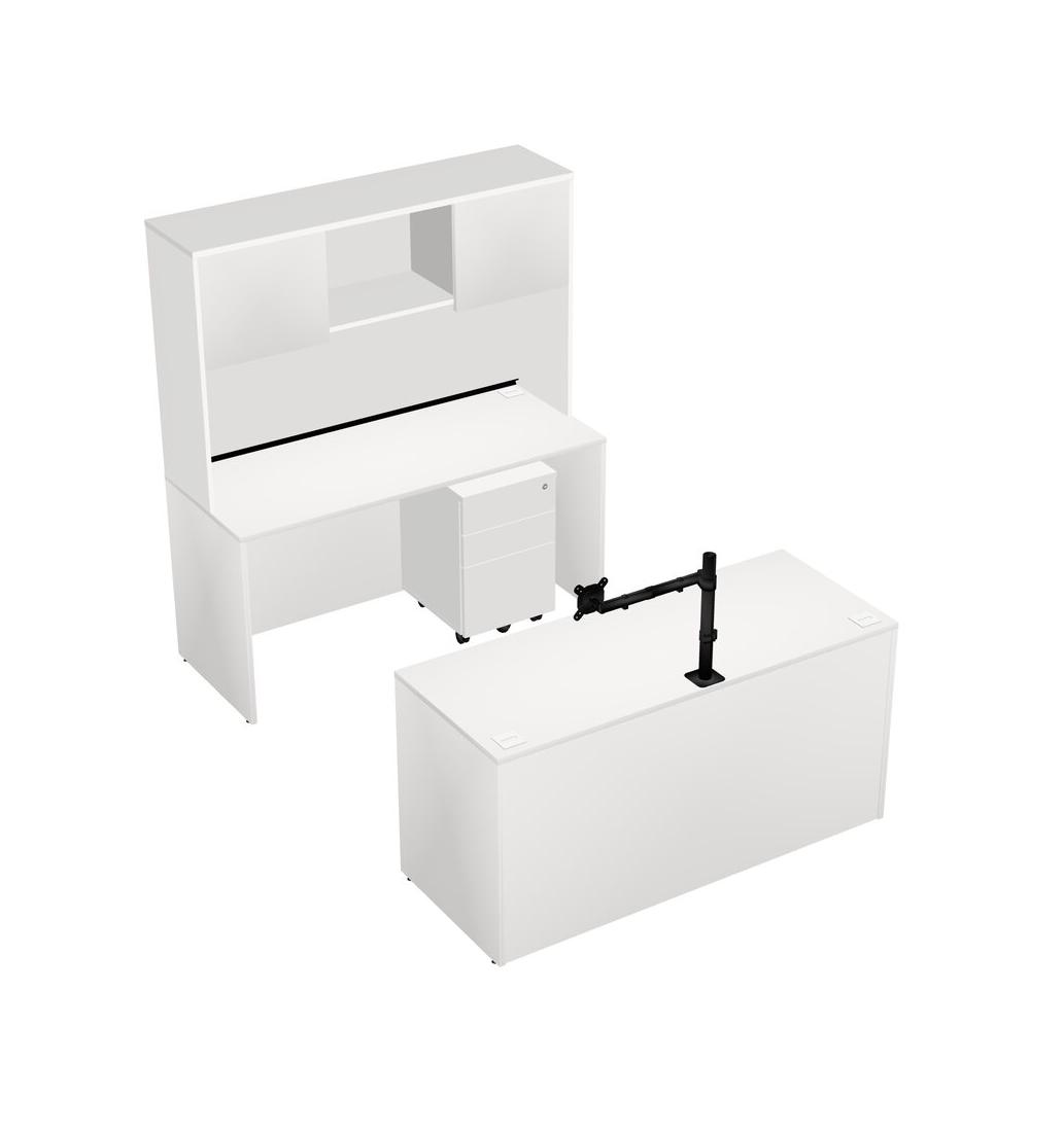 Office Parallel Desk Credenza Desk + Wooden Mobile Drawers + Hutch + Monitor Arm (single Arm)