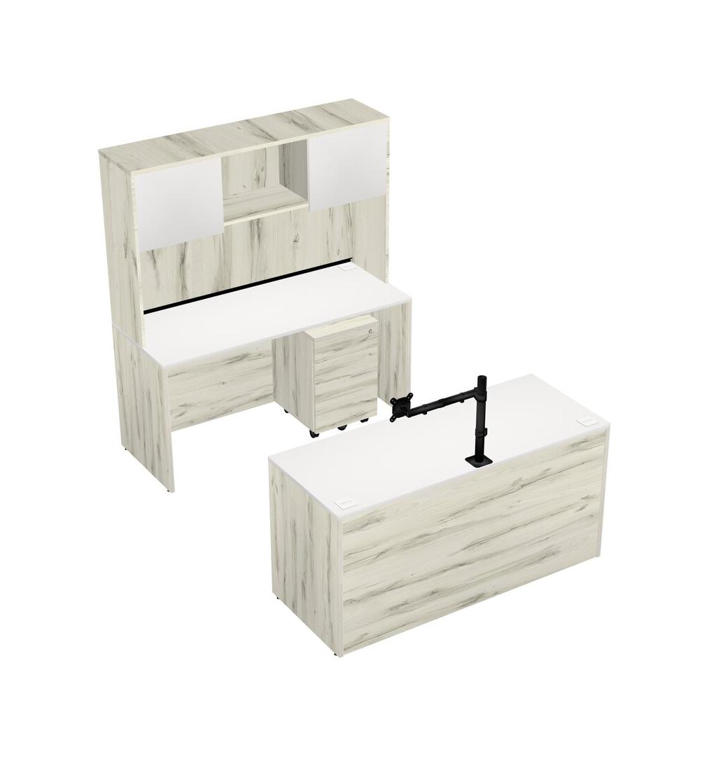 Office Parallel Desk Credenza Desk + Wooden Mobile Drawers + Hutch + Monitor Arm (single Arm)