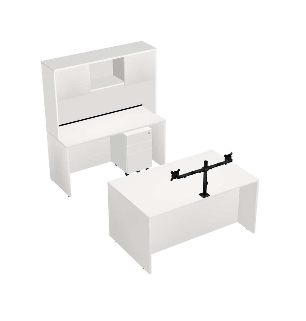 Office Parallel Desk Credenza Desk + Wooden Mobile Drawers + Hutch + Monitor Arm (double Arms)