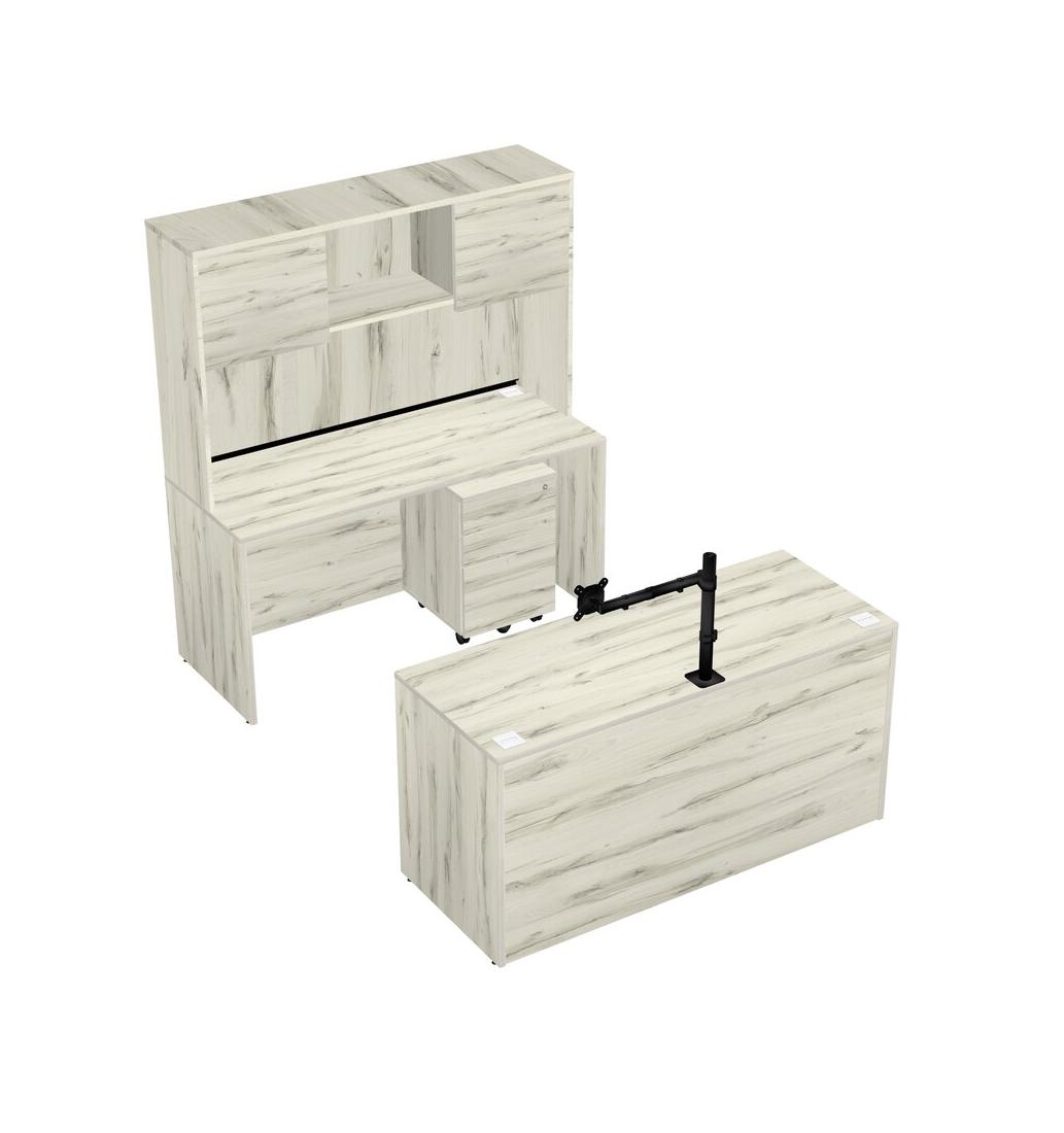 Office Parallel Desk Credenza Desk + Wooden Mobile Drawers + Hutch + Monitor Arm (single Arm)
