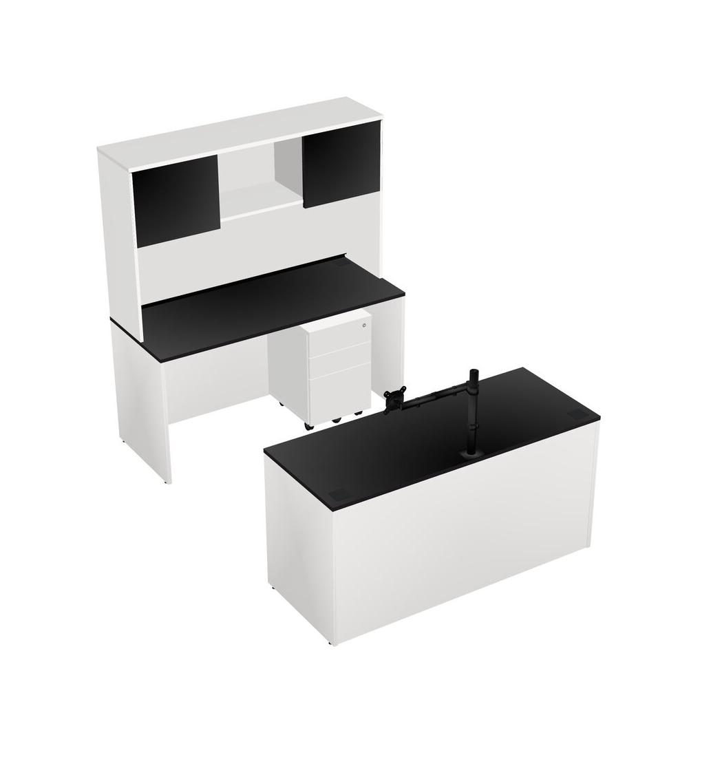 Office Parallel Desk Credenza Desk + Wooden Mobile Drawers + Hutch + Monitor Arm (single Arm)