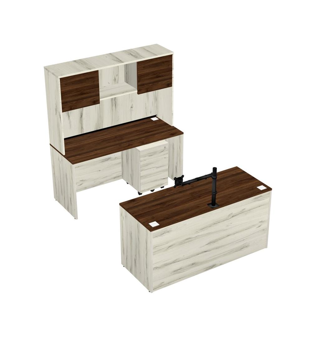 Office Parallel Desk Credenza Desk + Wooden Mobile Drawers + Hutch + Monitor Arm (single Arm)