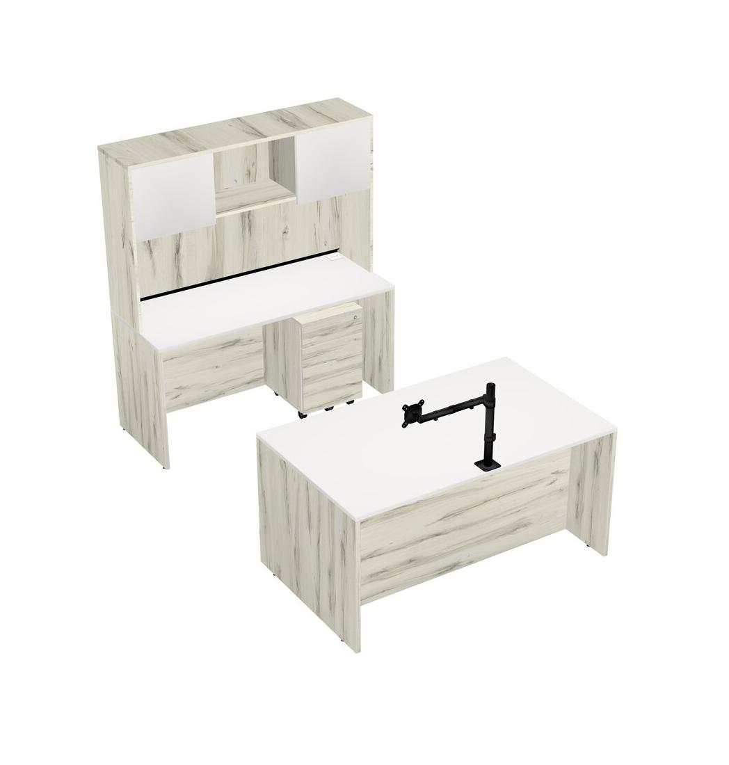 Office Parallel Desk Credenza Desk + Wooden Mobile Drawers + Hutch + Monitor Arm (single Arm)