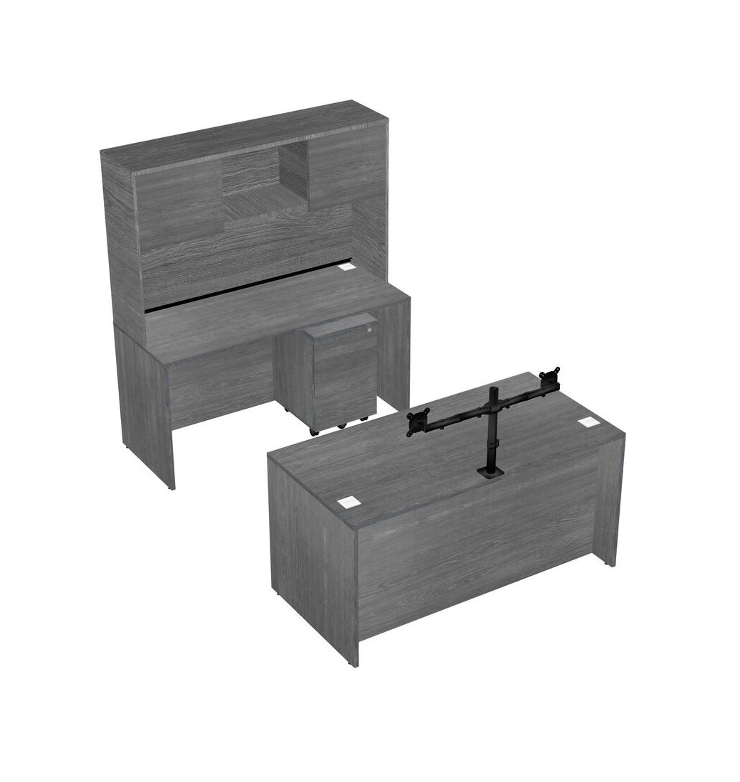 Office Parallel Desk Credenza Desk + Wooden Mobile Drawers + Hutch + Monitor Arm (double Arms)