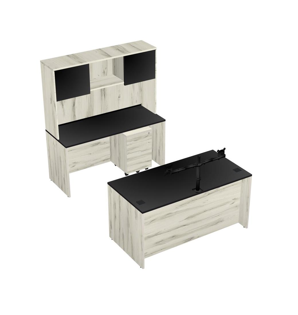 Office Parallel Desk Credenza Desk + Wooden Mobile Drawers + Hutch + Monitor Arm (double Arms)