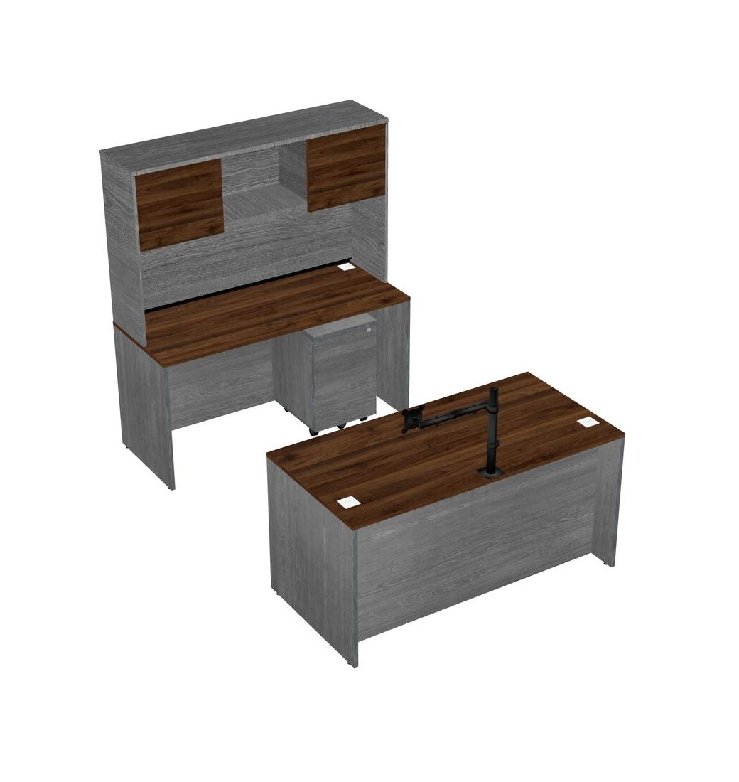 Office Parallel Desk Credenza Desk + Wooden Mobile Drawers + Hutch + Monitor Arm (single Arm)
