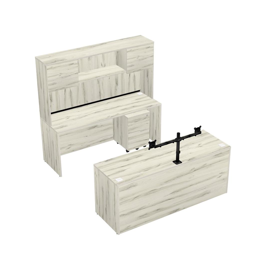 Office Parallel Desk Credenza Desk + Wooden Mobile Drawers + Hutch + Monitor Arm (double Arms)