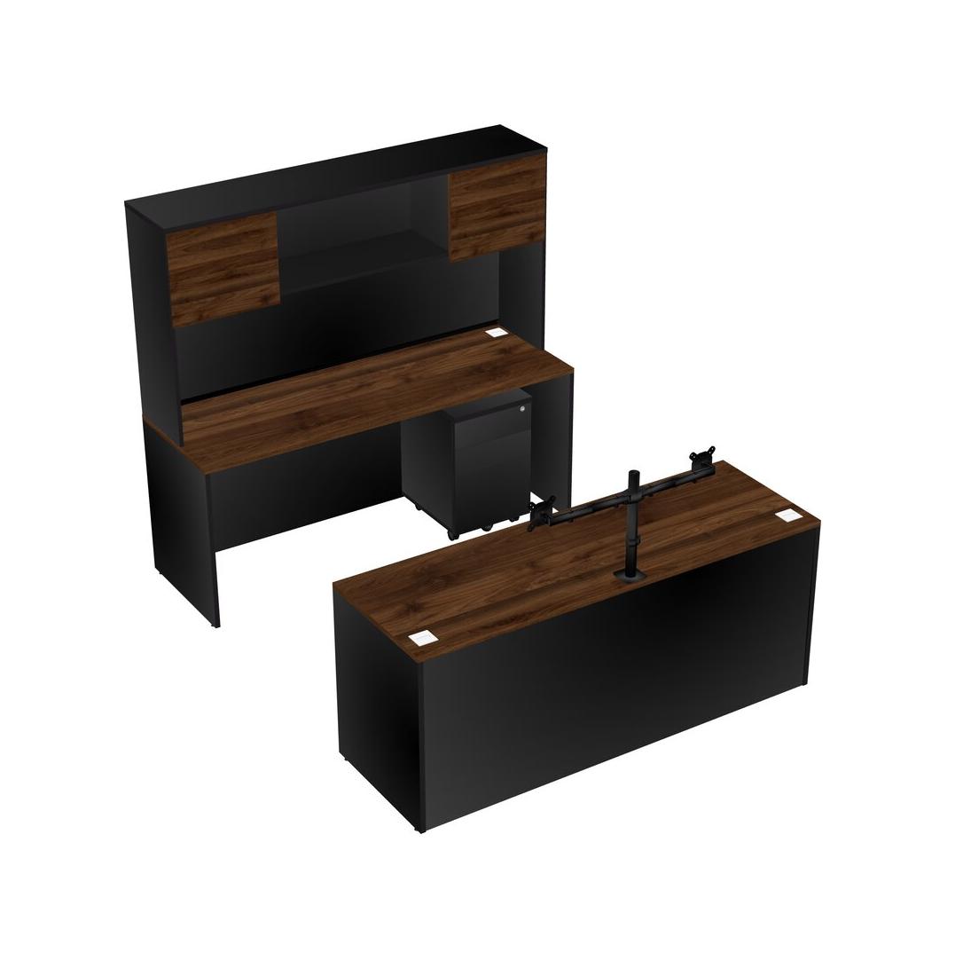 Office Parallel Desk Credenza Desk + Wooden Mobile Drawers + Hutch + Monitor Arm (double Arms)