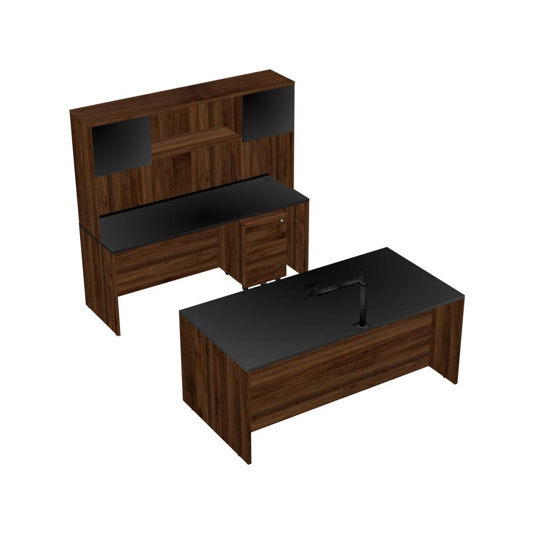 Office Parallel Desk Credenza Desk + Wooden Mobile Drawers + Hutch + Monitor Arm (single Arm)