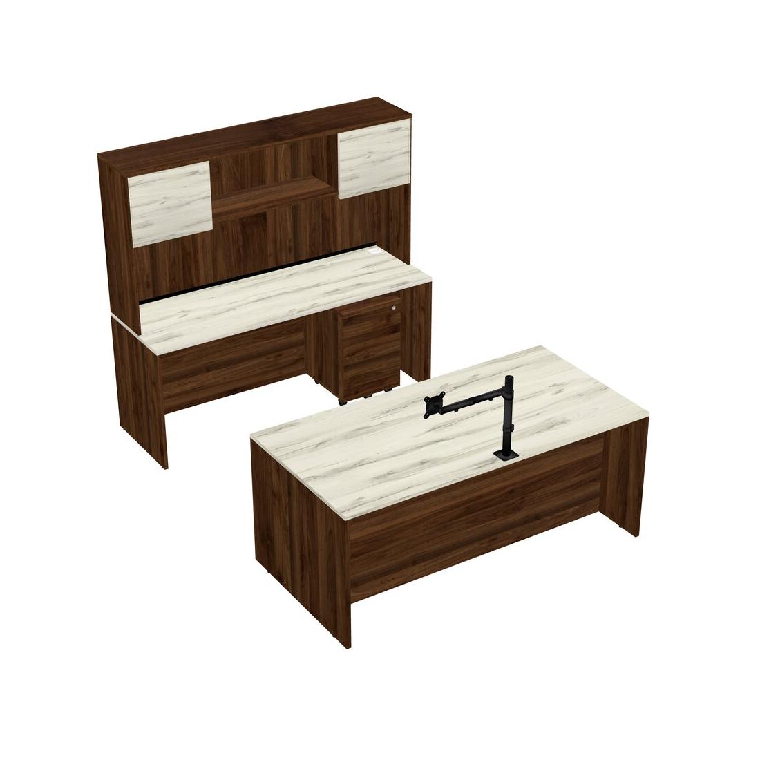 Office Parallel Desk Credenza Desk + Wooden Mobile Drawers + Hutch + Monitor Arm (single Arm)