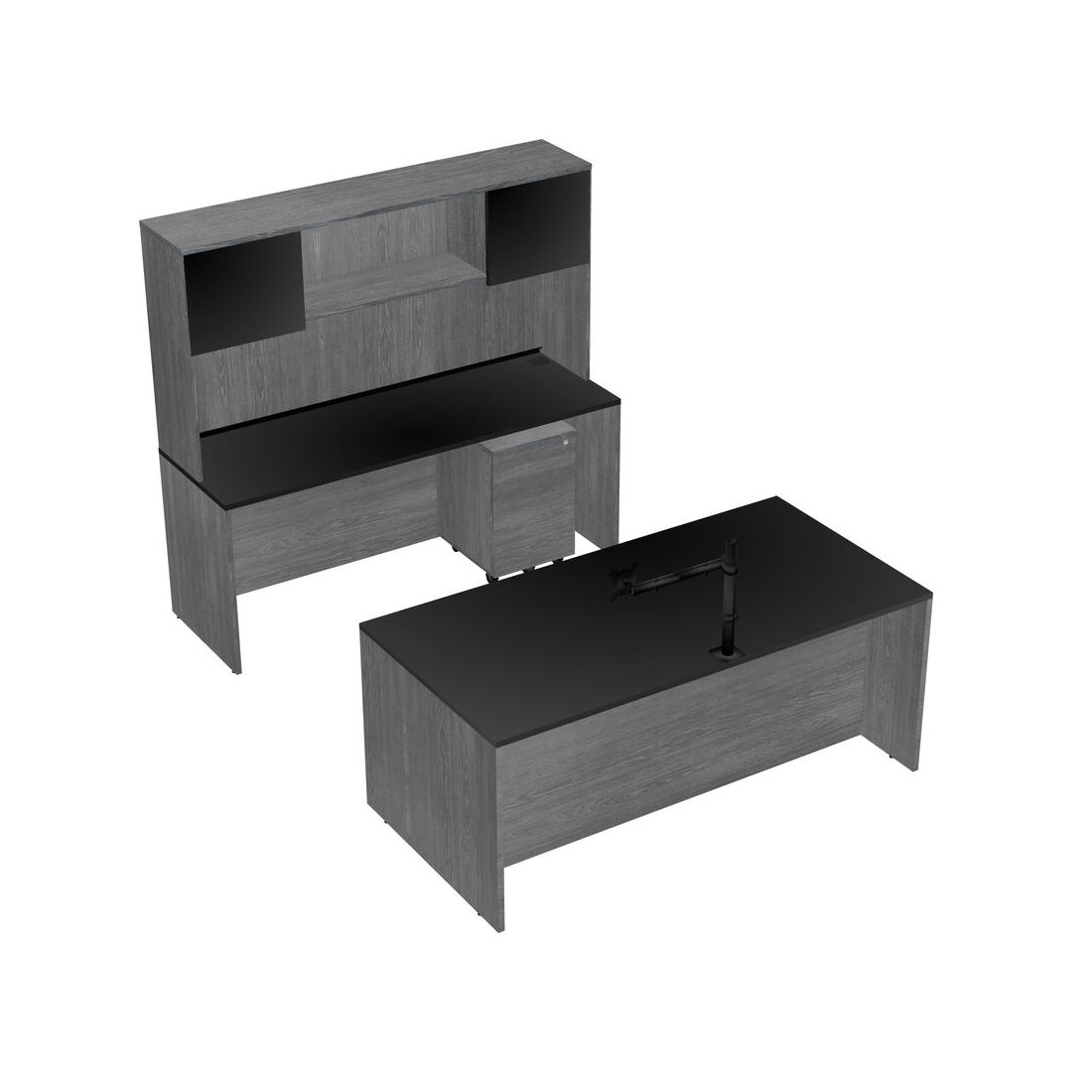 Office Parallel Desk Credenza Desk + Wooden Mobile Drawers + Hutch + Monitor Arm (single Arm)